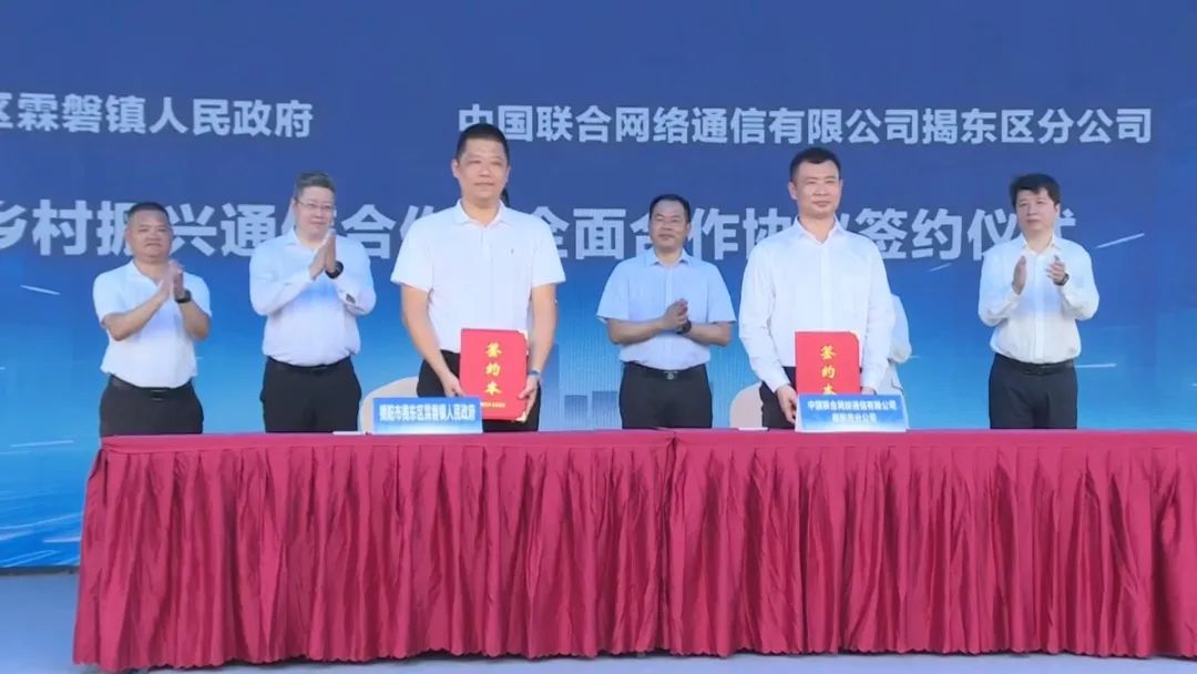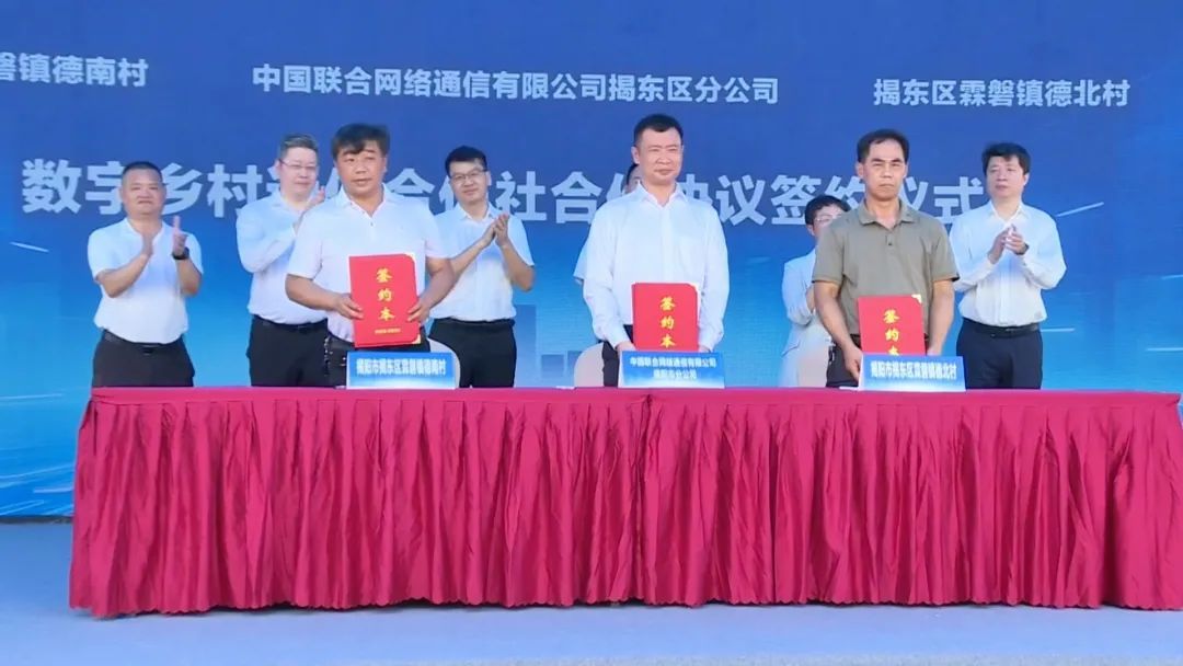 活动上,揭东区镇级代表(霖磐镇人民政府)与揭东联通签订全面战略合作协议,村级代表(霖磐镇德南村、德北村)与揭东联通签订数字乡村通信合作社合作协议。